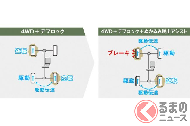 また、「ぬかるみ脱出アシスト機能」をデフロック付車にも追加し、ぬかるみからの脱出性能を一層高めたほか、キャリイ特装車においては、清掃ダンプの4WDに4速ATの設定を追加しました。