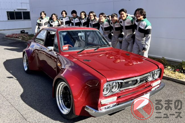 かつて同校の1期生は、この初代サニーをベースに、旧車のスタイリングと現代らしいパワフルなスペックを持ち合わせたカスタムカーを製作。大きな反響がありました。