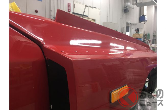 この大胆なイメージチェンジを図るバンパーやフェンダーは、形に左右差がでないように調整した点などが特に苦労した点だといいます。