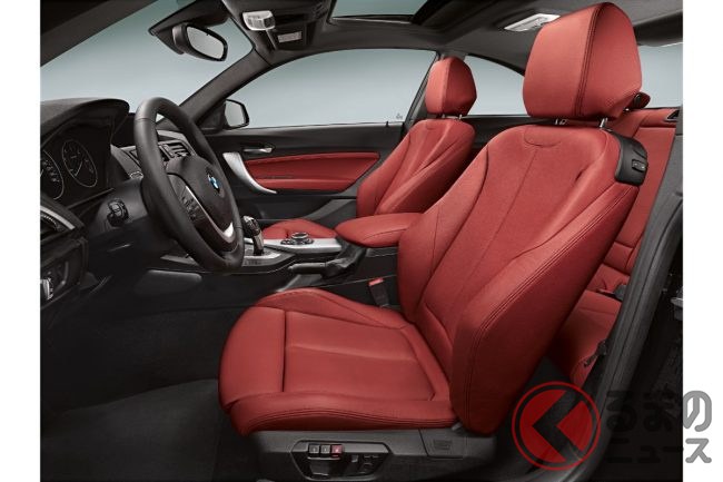 例えば、2014年式の「220i Mスポーツ」で、車両本体100万円強という個体が見つかりました(本記事執筆時点)。これはMスポーツ専用のエアロパーツやスポーツサスペンションに加え、この個体にはオプションのレッドレザーシートや運転支援システムまで装備されていました。