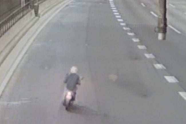 すると、左から原付が走行。特に安全確認をすることもなくふらつきながら本線へと合流していきます。本線を走行する車両とはかなりの速度差があることが映像でもわかり、非常に危険です。