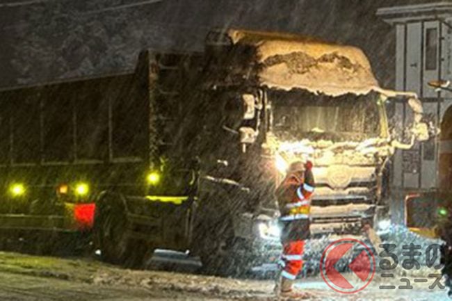 国交省ブチギレ報告「大型車がスタックしました」に反響殺到! 「舐めてる」「厳罰にしろ!」 呼びかけガン無視「雪対策ゼロ」で雪道走行し案の定“立ち往生”… 岐阜