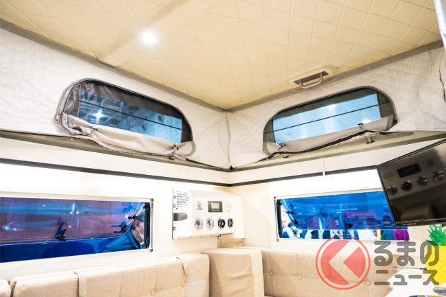 さらにソーラーパネル150Wやインバーター3000W、LED照明、カーテンや網戸など快適装備も充実。