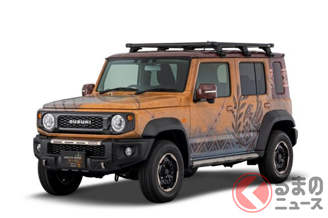参考出品される「ジムニー ノマド モンスターハンターワイルズ エディション」は、「もしモンスターハンターの世界にスズキがあったら」という世界観をテーマに、ゲーム内の「簡易キャンプ」をモチーフとして仕立てた架空の冒険車両です。