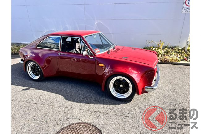 日産「斬新サニー」まもなく初公開! 旧車の「スカイライン顔」に「シルビアエンジン」搭載! 鮮烈「トーマレッド」採用の“学生製作カスタムカー”「サニースカイライン」 TASで披露へ