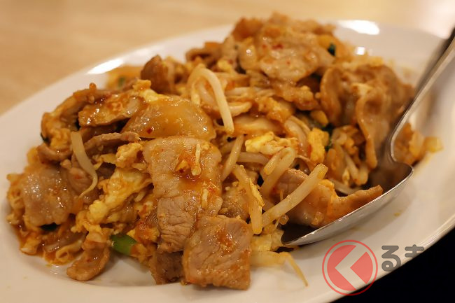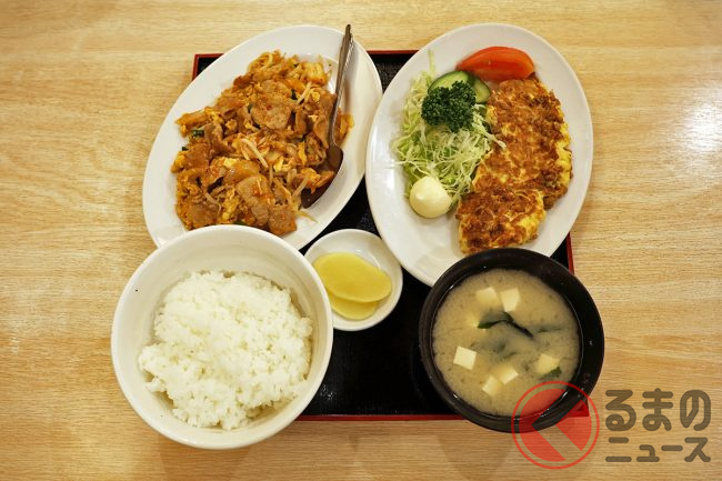 腹ペコだった筆者は、“それぞれの孤独のグルメ”でトラックドライバーに扮した黒木華さんに倣って、「豚肉とキムチと卵の炒め定食(1050円)」をチョイス。