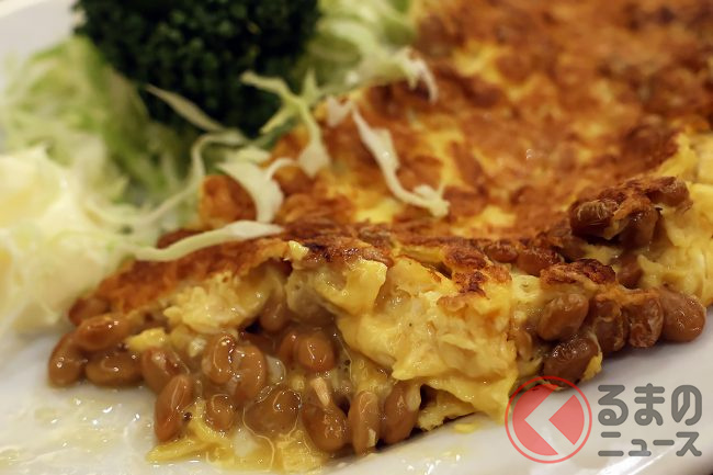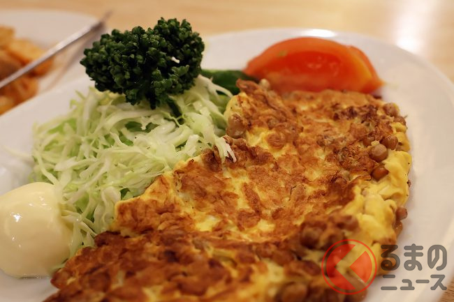 一方の納豆オムレツは、納豆のつぶつぶ感と、とろりと流れ出てくる卵のハーモニーが格別です。