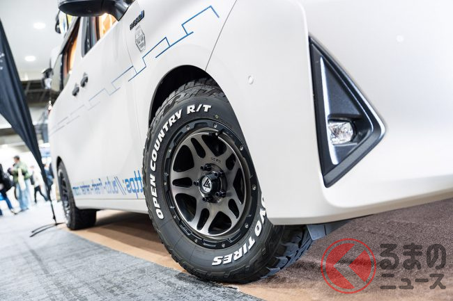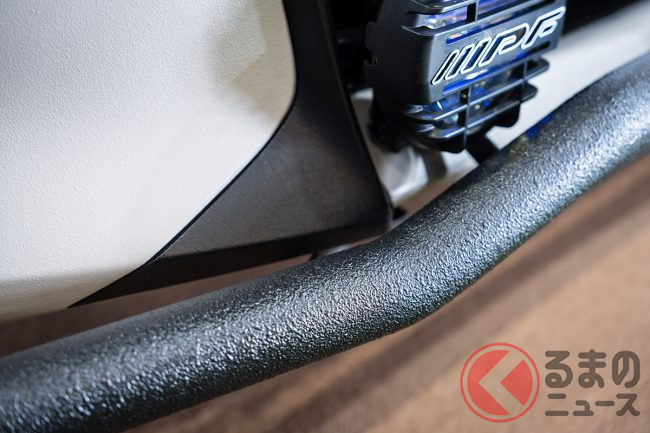 また、フロントのJAOS製スキッドバーや大型のフォグランプに加え、トーヨータイヤ「オープンカントリー」とデルタフォース「オーバーランダー」を組み合わせた足回りも目を引くポイントでしょう。