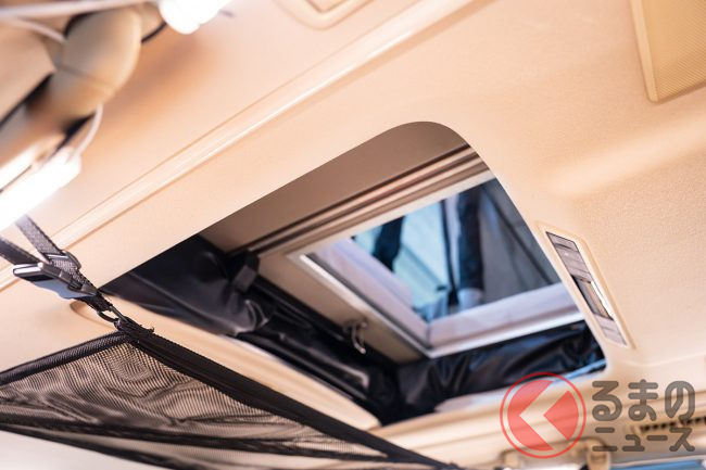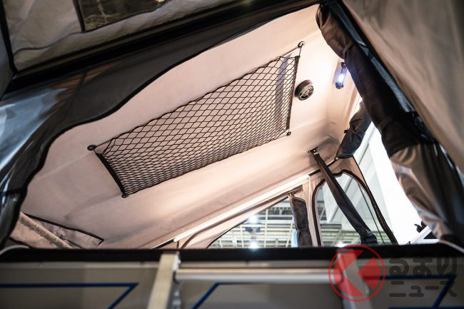 一方、このキャンピングカーの最大の特徴となっているのが、ポップアップ式のルーフトップテントです。