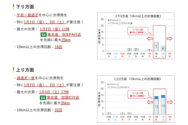 さらに30km以上の大渋滞については1月2日に2回、1月3日に4回発生すると予想されています。