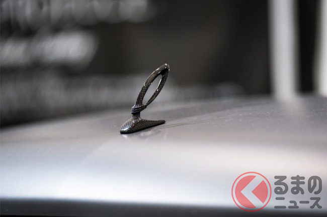 さらにボンネットにはドライカーボン製のマスコットが追加され、細部にまで統一された素材感と質感が宿っていました。