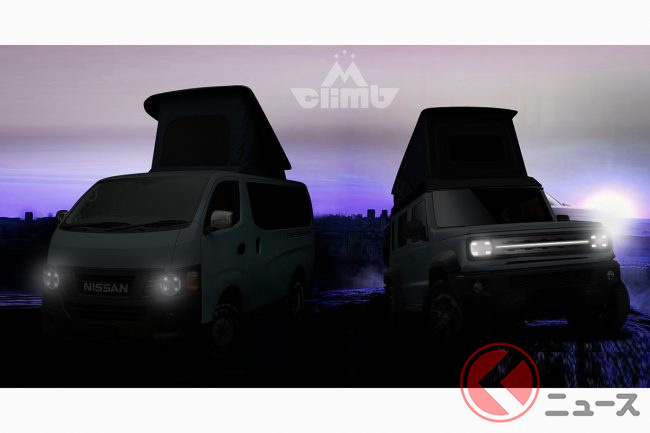 「新たな冒険の始まり」をコンセプトに掲げ、スズキ「ジムニーノマド」と日産「キャラバン」の2台を通じて、旅やアウトドアを軸とした新しいカーライフの提案を行うとしています。