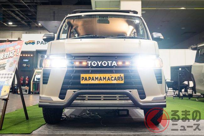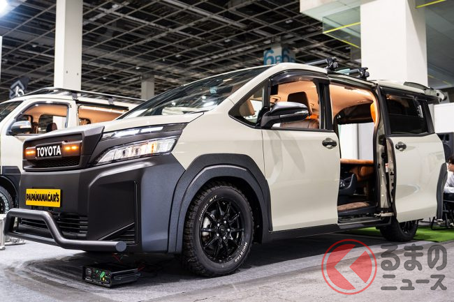 まるで“本格クロカン”なトヨタ「ヴォクシー」がスゴい! ごっついグリルガード×ザラザラ塗装で武装した「家族向けミニバン」! パパママカーズが手掛けた異色のキャンピングカー仕様とは!