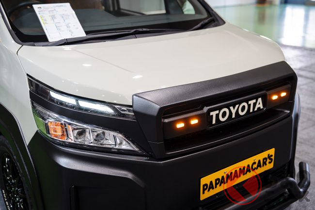 まずフロント周りには、パパママカーズ独自のフロントグリルを採用。そこにグリルマーカーや力強いグリルガードを組み合わせることで、まるで本格クロカンのような堂々とした顔つきを演出しています。