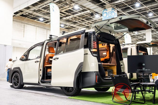 ジャパンモビリティショー関西2025において、パパママカーズはトヨタ「ヴォクシー」をベースとしたキャンピングカーを出展しました。本格派のクロカンのようなルックスが印象的なこのキャンピングカーは、どのようなモデルなのでしょうか。