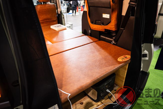 後部座席はベッドキットによってフルフラットにすることが可能で、大人2人が足を伸ばして就寝できる空間が確保されています。