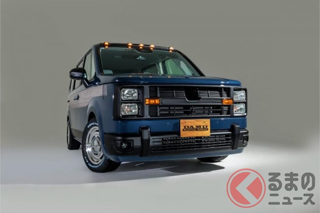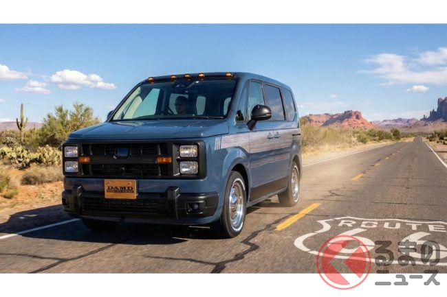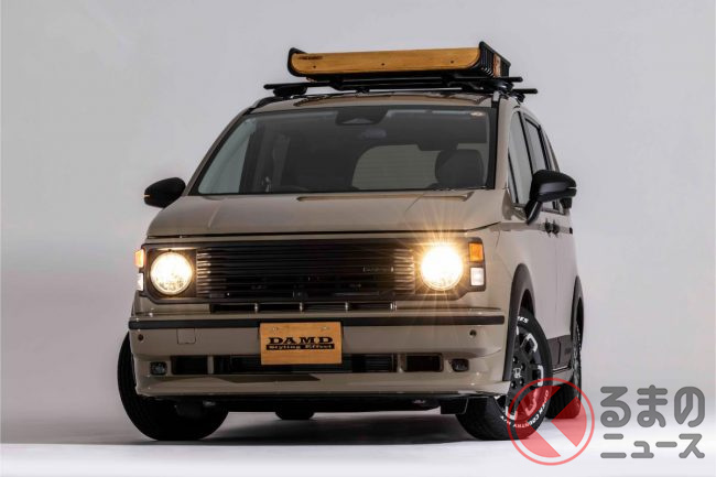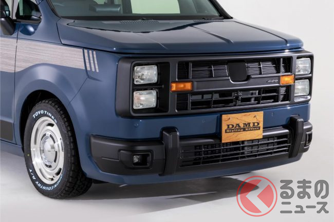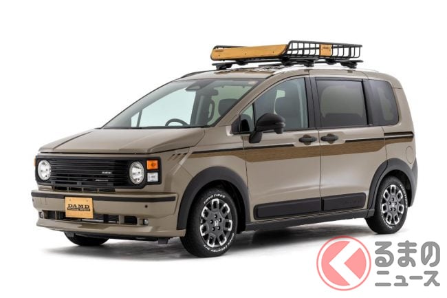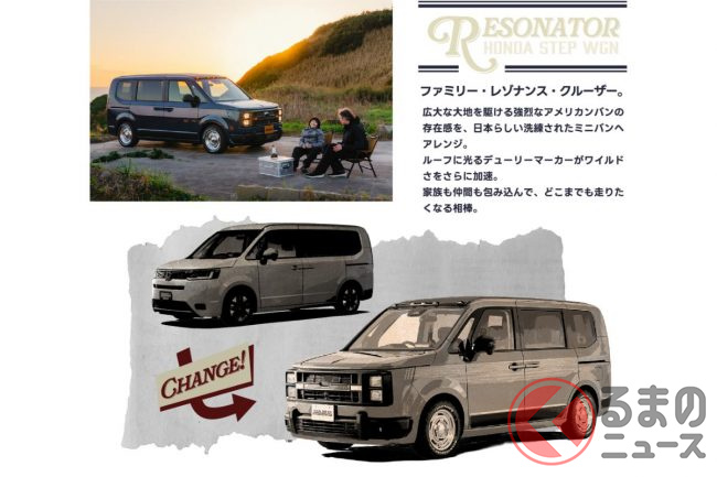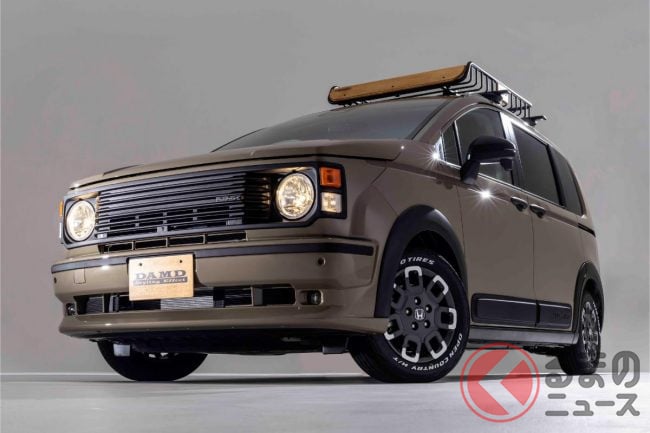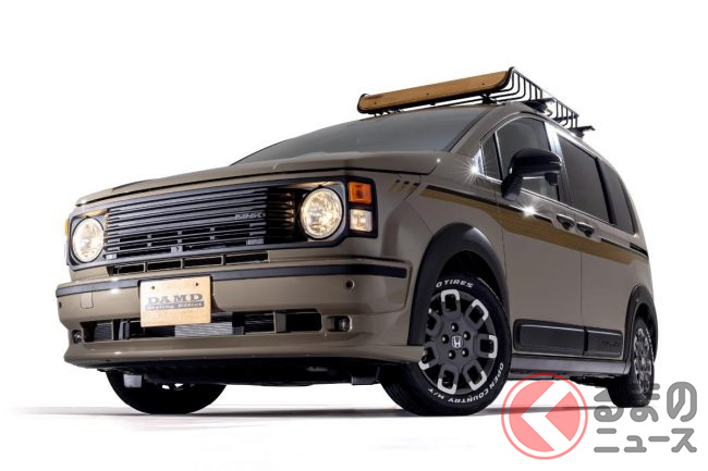 ホンダ最新「ステップワゴン」超レトロな“ワイルド仕様”初公開! 古き良き「角目4灯ライト」×カクカクボディ採用した斬新「3列ミニバン」がスゴイ! DAMD「ステップワゴン レゾネーター」発表!