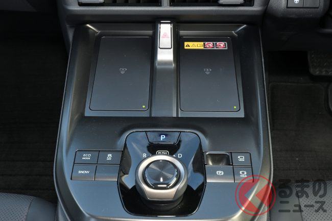 インテリアはバイザーレスのメーターは不変ですが、インパネは薄くシンプルな形状に変更。センターモニターは「アルファード/ヴェルファイア」で見たことのある形状ですが、物理スイッチが所狭しと並んでいた従来モデルより使い勝手は向上。更に、やや煩雑だったシフト周りのスイッチレイアウトも整理されています。ちなみにワイヤレス充電は2つに増えています。