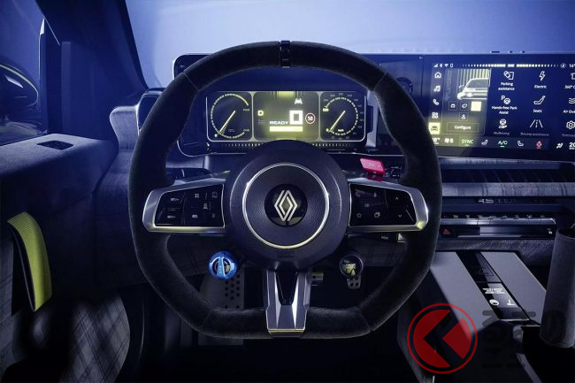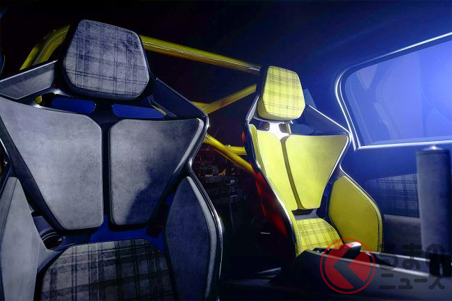 28年ぶり復活! 斬新「コンパクトカー」が凄い! 全長4.1mボディに「550馬力」×後輪駆動パワトレ採用! 名車オマージュの「レトロデザイン」&“左右非対称”のお洒落内装もイイ! ルノー「5ターボ 3E」とは?