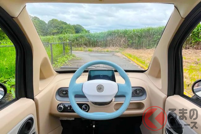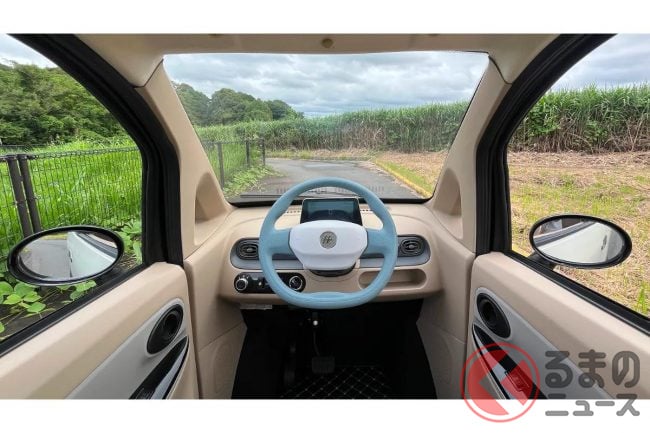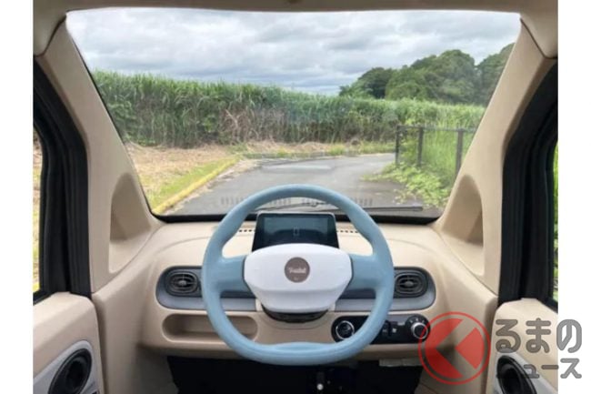 操作系は、超小型モビリティによく見られる「バーハンドル」タイプではなく、一般的なクルマと同じ「丸いステアリングホイール」を採用。