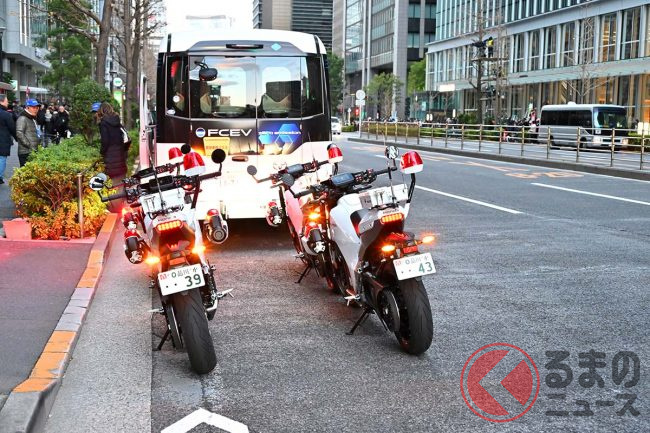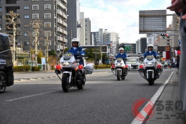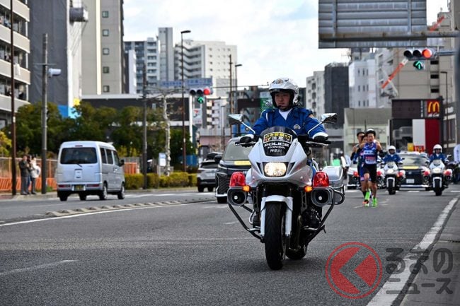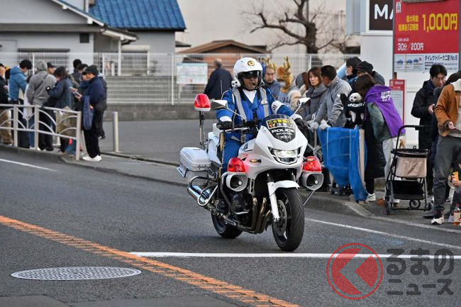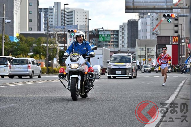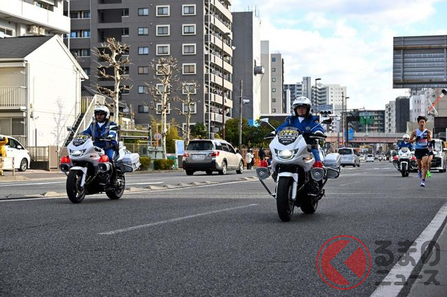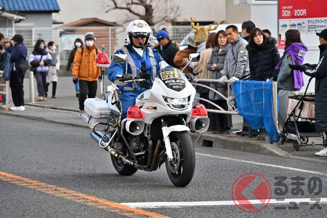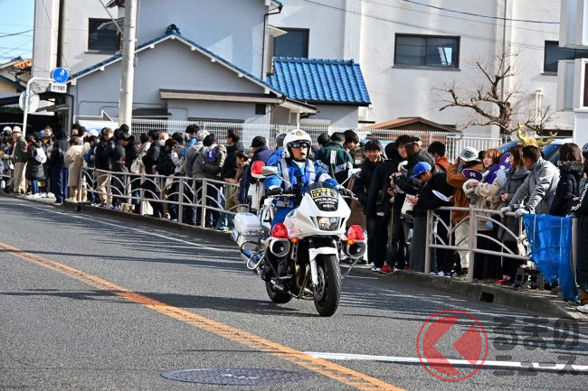 ホンダ製「“新型”白バイ」箱根駅伝でデビュー! 俳優「つるの剛士」も見惚れた「排ガスゼロの無音モデル」に「正式採用はある?」「アナウンスが聞きやすい」「環境に優しい」と反響