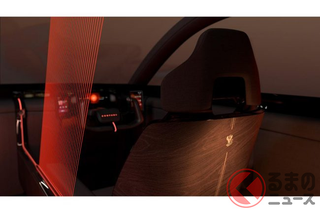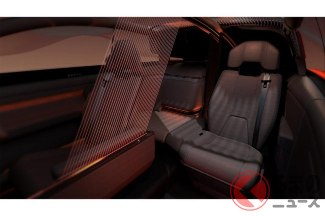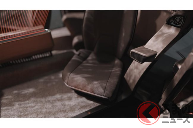 ジャパンモビリティショー2025の展示では、助手席が大きく後方へスライドした状態で展示されていましたが、これは助手席側にリアシートが存在しないからこそ可能なレイアウトです。