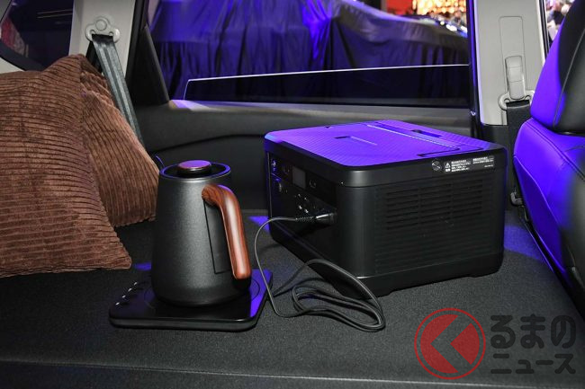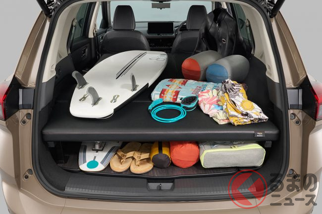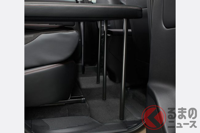 さらに、ベース車両のシートと同様に、溶岩をモチーフにした「ラバレッド」のステッチがベッドマットにもあしらわれ、インテリア全体に統一感のあるコーディネートが施されています。ベッドを展開した状態でも、その下には荷物を収納できるスペースが確保されており、快適な休憩や宿泊を可能にする機能性と、高い積載性を両立させています。