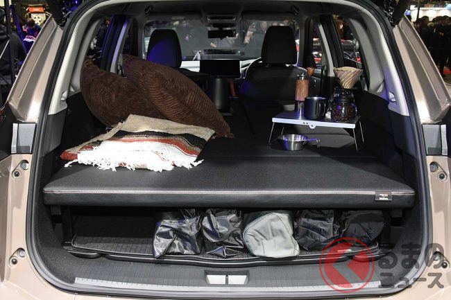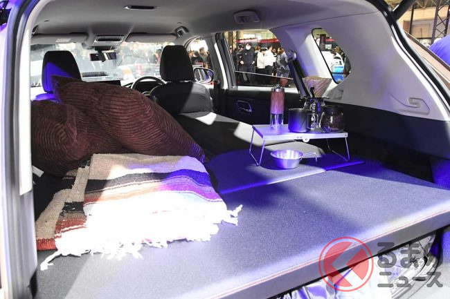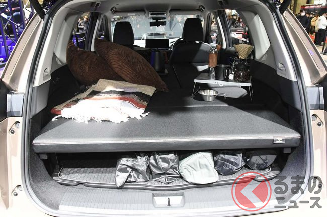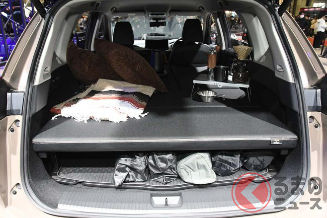 日産「エクストレイル “車中泊”スペシャル」登場! 2列目〜荷室が“広々ベッド”&耐水生地で超快適! 「ROCK CREEK マルチベッド」東京オートサロンに出展
