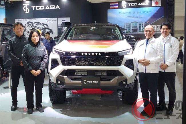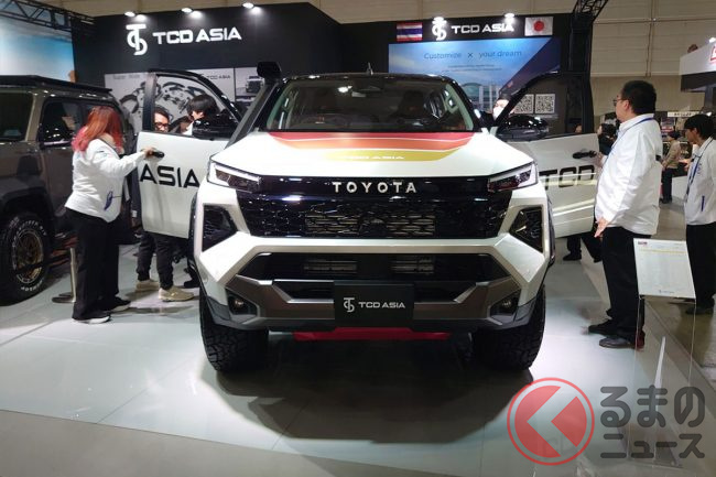 10年ぶり全面刷新! トヨタ新型「ハイラックス」初公開! レトロな「旧車デザイン」採用&オバフェン装備でワイドな「Customize Concept」TCD ASIAから登場