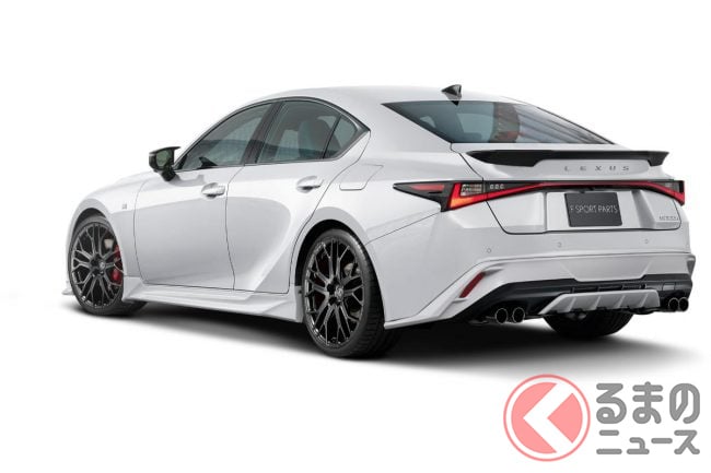 レクサス新型「IS“スポーティ仕様”」発表! 3分割の「斬新顔」×4本出しマフラーד大径ホイール”など専用パーツもり沢山! 空力&造形を磨き上げたTRD「F SPORT PARTS」発売!