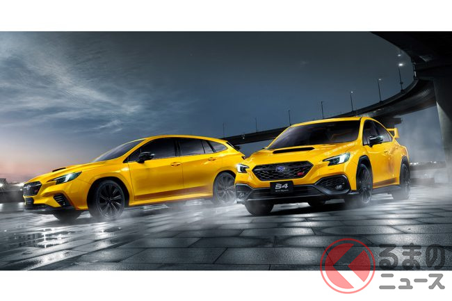 スバルが新「WRX S4」初公開! 精悍なスペシャルカラー「黄×黒」新採用! ハイパワー2.4リッター「水平対向ターボ」の特別仕様車「Black Limited II」発表