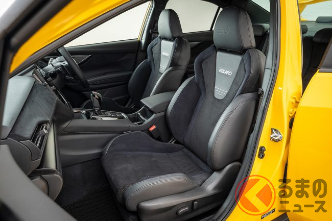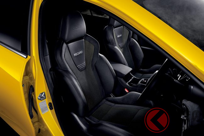 フロントシートにはSTIロゴ入りの「RECARO」製シートが装備され、素材には「ウルトラスエード」が用いられています。
