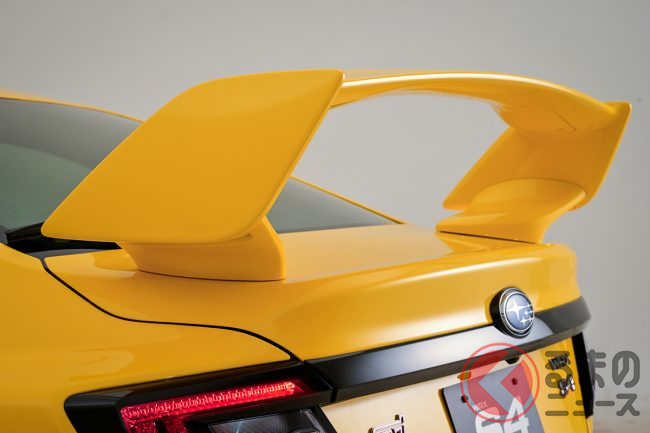 ボディカラーは、専用のサンライズイエローのほか「ギャラクシーパープル(有料色)」など全5色が設定されているほか、後方のスタイリングを決定づける大型リアスポイラーの「装着あり・なし」をユーザーが選択できる点も大きな特徴です。
