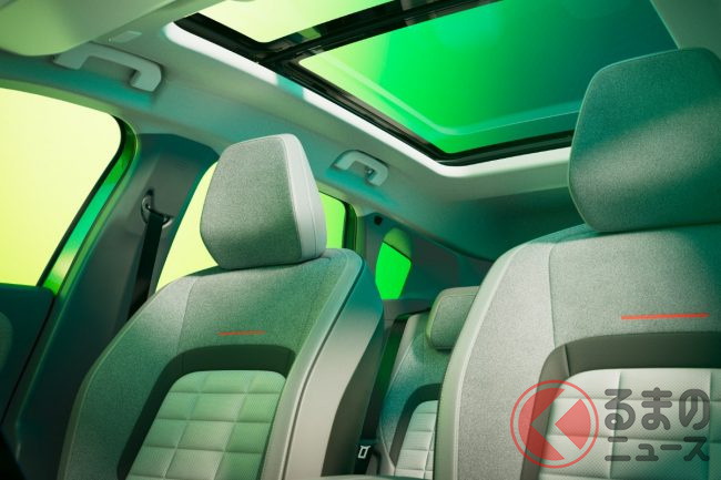 インテリアは「C-Zen Lounge(シー・ゼン・ラウンジ)」というコンセプトのもと、繭(コクーン)に包まれるような快適空間が広がっています。水平基調のダッシュボードは「ソファ・デザイン」と呼ばれ、リビング家具のような高品質なファブリック素材で覆われています。