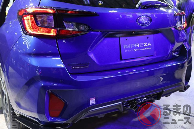 価格356万円! スバル「“新”スポーツワゴン」初公開! 「センター2本出しマフラー」×スポーティなSTIエアロパーツ採用! 特別仕様車「インプレッサSTI Performance Edition」登場