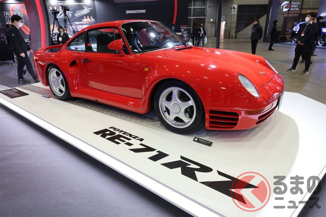 会場にはRE-71RZの祖であるRE71を1985年に純正装着タイヤとして採用したポルシェ959が展示されていますが、このモデルはブリヂストンのタイヤを海外メーカーで初めて純正装着タイヤとして採用した車両という、ブリヂストンの歴史を語るうえで外すことができない1台となっています。