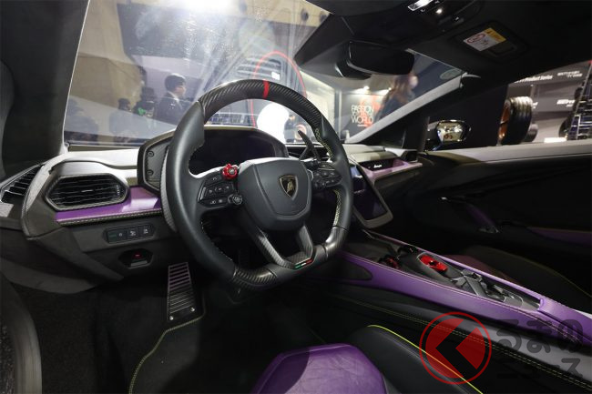 またブリヂストンはランボルギーニのオフィシャルテクニカルパートナーとなっており、ランボルギーニの代名詞であるシザーズドアのフラッグシップモデル「ランボルギーニ レヴエルト」には専用開発された「POTENZA SPORT」を装着。この車両は実際に乗って記念撮影ができるようになっています。