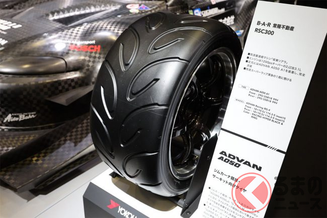 横浜ゴムブースのもう一つの注目タイヤは、同社のモータースポーツ用タイヤである「ADVAN A050」に新たに追加された「A1」という新コンパウンドを投入したモデルです。