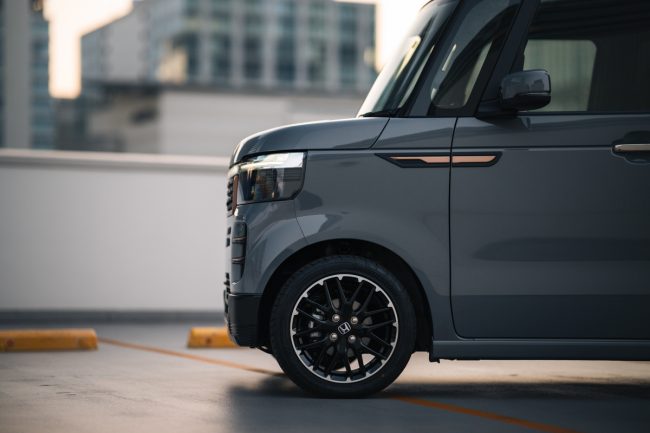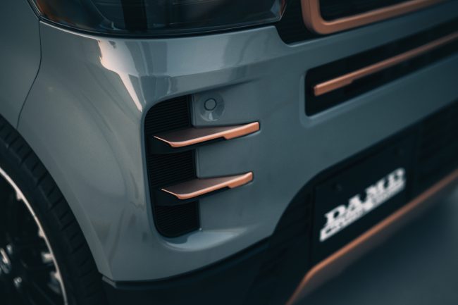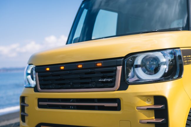 そしてカッパーに塗装されたパーツも別体成形で、一体成型のバンパーが生み出すおおらかな広い面と、解像度の高いスモールパーツの組み合わせのコントラストが、見慣れたN-BOXのフェイスデザインに唯一無二の世界観を構築しています。