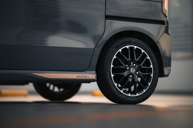 一方で、ホイールはあえて純正のアルミを残すなど、オリジナルN-BOXへのリスペクトも感じさせてくれます。