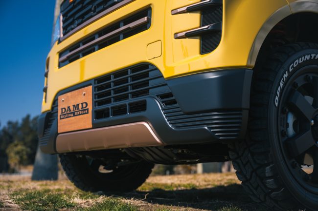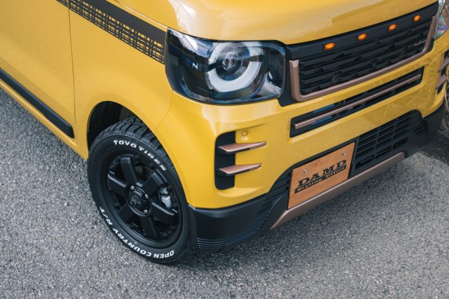 「DAMD(ダムド)」は、神奈川に本拠地を置くカスタムカーパーツブランドです。スズキ・ジムニーやダイハツ・タフトなど、人気モデルをおしゃれでレトロなスタイルでドレスアップさせるパーツを多数ラインナップしていますが、世界の名車をリスペクトし、その魅力を再解釈してカスタムキットのデザインに落とし込むのがダムドの魅力です。