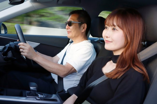 佑紀さんは実は乗り物酔いをしやすいそうですが、ボディが揺れないうえにゴツゴツ感が少ない乗り心地がお気に召したようで、この日は合計で10時間近くも助手席に座っていてくださったのに、気持ち悪くならずに済んだ模様。