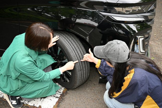 まずは約1年半ぶりの再会となるヴェルファイアに乗り込む前に、あれから使い続けられてきたタイヤの状態を観察してみることにします。