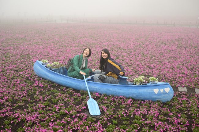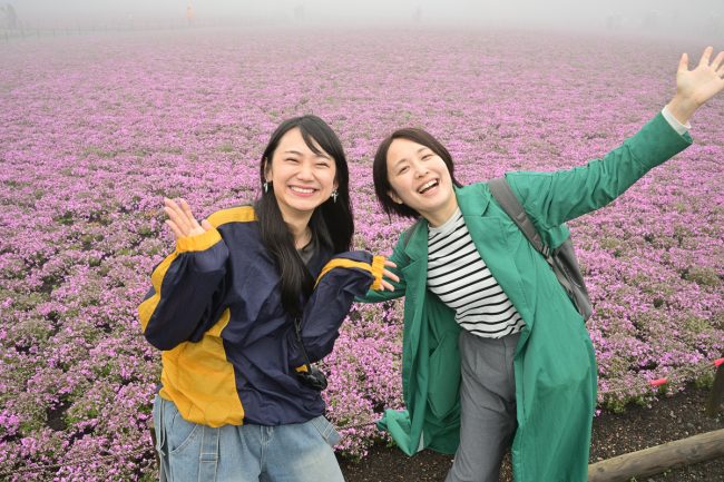 これから向かう山梨県にある富士本栖湖リゾートでは、「富士芝桜まつり」が行われていて、あたり一面に咲くピンクの芝桜がちょうど見頃なのだそうです。