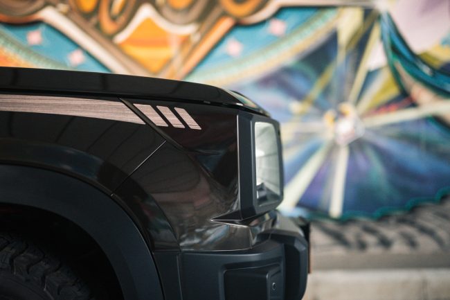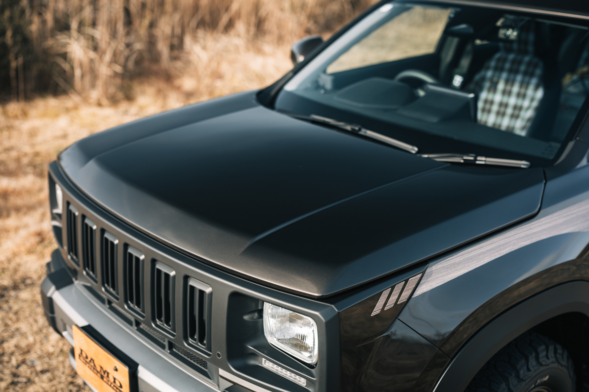 ダムドのデザイナー・徳田氏が「リバーブのテーマはアメリカンクラシックワイルドカスタムです。直線的でスタンスが良いクルマのWR-Vこそ、アメリカンでクラシカルなカスタムにぴったり合うと考え、デザインを進めました」と説明するように、よりスクエアでワイルドな印象を実現しています。