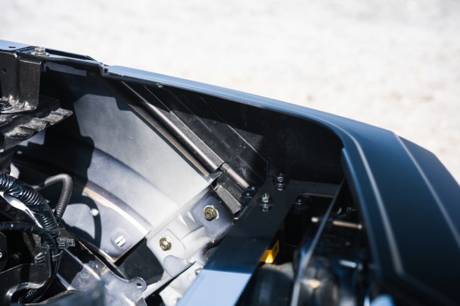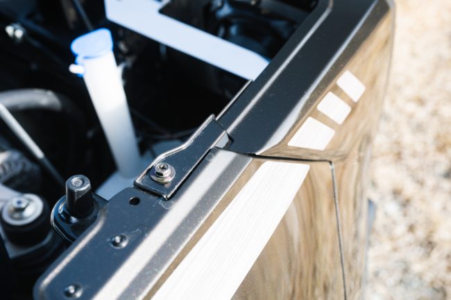 ヘッドライトの下には、ダムド製のLEDバーウインカーランプが配置され表情をさらに引き締めてくれます。