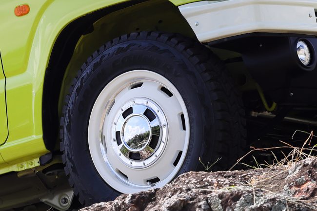 ジムニーはカスタムの手法もさまざまですが、ガルシア「シスコ」は、自身のカスタマイズの方向性に合わせて1本のホイールで3つの楽しみ方を選べるようになっているのです。
