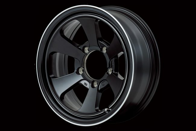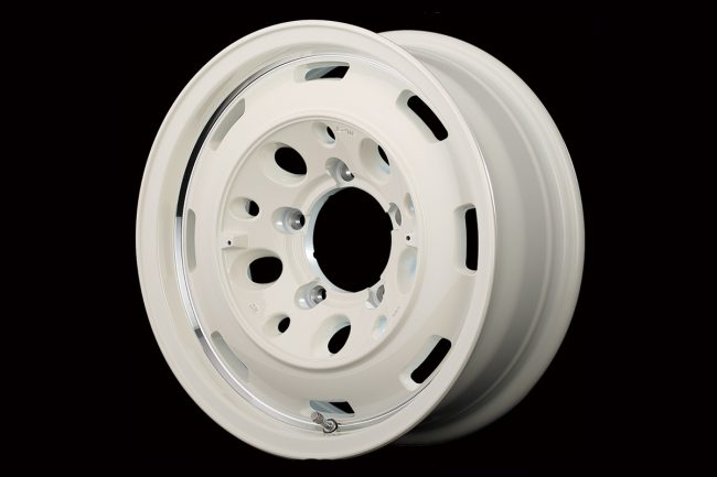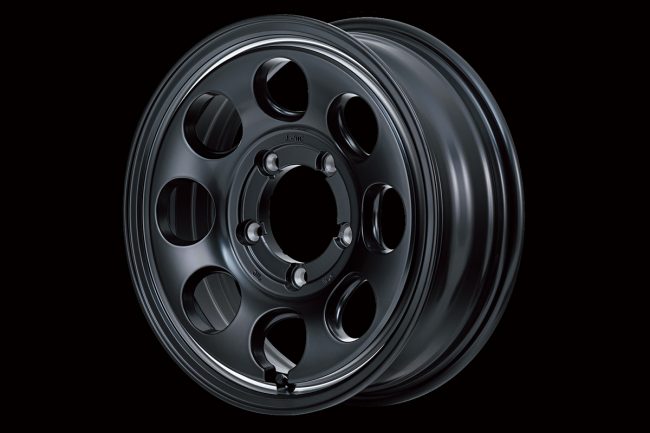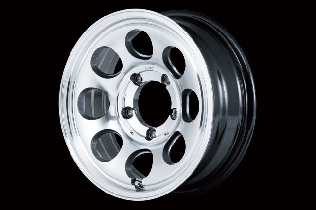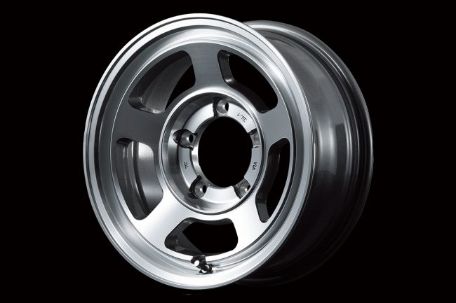 ジムニーシリーズに適合するサイズとしては16インチが用意されており、カラーは「ポリッシュ/ライングレー」と「セミグロスブラック/デュアルポリッシュ」の2色をラインナップ。どちらのカラーもリムとスポーク間に設けたヴァーレイデザインを生かした印象的なものとなっています。
