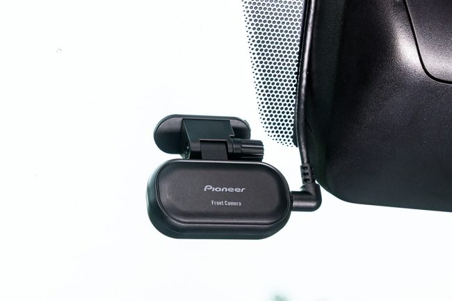 またフロントカメラの内部にGPSアンテナを内蔵することで、ダッシュボード上に別途GPSアンテナを設置する必要もないため、配線が最小限で済みます。さらに、配線の接続コネクタをL型かつ、本体の配線差し込み部を内側にオフセットすることで配線の露出を低減し、まるで純正かのようにスッキリと取り付けられるのが特長。後付け感がないのも、うれしいところです。