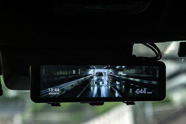 通常のミラーの場合は、当然ながら周りが暗い状態ではミラーに映るものも暗くなってしまいますが、デジタルミラーの場合はカメラの映像をディスプレイに出力しているため、肉眼よりも明るく見えるというのも、ありがたいところです。天気の悪いときや夜間、トンネル内などで活躍してくれるでしょう。